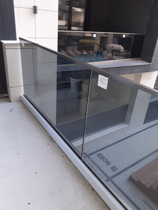 Acest model de balustrada este unul care a prins foarte mare avant in ultimii ani. Acesta prezinta un nivel de securitate foarte mare fiind confectionat din elemente de prindere tip menghina, mascate ulterior, sau direct din sina de aluminiu (sau inox). Pe aceste sisteme de prindere se ataseaza sticla securizata si laminata, simpla sau cu nuanta.